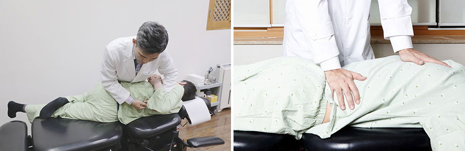 경결돼 문제를 유발하는 근육을 부드럽게 이완시켜주는 이완추나(Chuna)는 허리 주변 근육의 기능을 회복 및 강화시켜주는 효과가 있습니다. 참고로 모커리 이완추나는 좌골신경통 환자 뿐 아니라 말기 척추관협착증, 2단계 이상 밀려나간 전방전위증 등의 퇴행성 척추질환 환자도 치료가 가능하며, 그 치료효과를 SCI급 논문발표를 통해 객관적으로 검증 받았습니다.