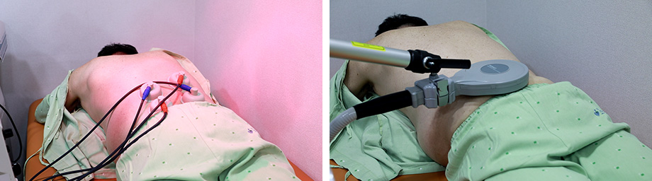 병동치료가 끝나면 약간의 휴식을 취한 후 물리치료를 받습니다. 물리치료 하루에 한번 진행됩니다. 물리치료는 근육과 인대 등을 풀어줄 수 있는 핫팩과 여러가지 물리치료 기계로 환자분의 상태에 따라 치료가 진행됩니다. 치료를 시행함에 한가지가 아닌 필요한 경우 복합적으로 치료를 시행하며, 통증과 뻐근함 및 저림 증상 등을 치료합니다.