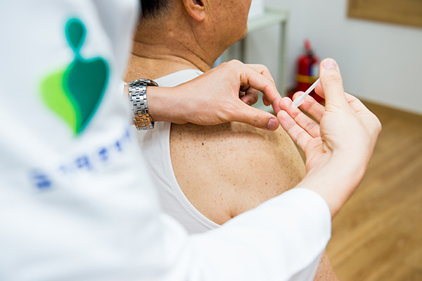 회전근개파열로 통증이 심한 상태라면 약침과 봉침치료를 통해 운동을 할 수 있는 어깨 상태를 만들어줘야 한다.