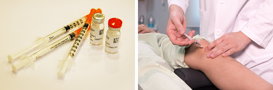 염증 및 부종제거, 연골보호 및 뼈파괴세포 억제, 신경기능 회복 등의 효과가 객관적으로 검증된 한약을 정제한 약침액을 무릎 통증 부위의 경혈에 직접 주입하기 때문에 침과 한약의 효과를 동시에 볼 수 있으며, 통증을 빠르게 감소시켜 줍니다. 또한 마모된 무릎연골 부위에 윤활유 역할을 하여 약해진 무릎관절을 보호하는 데에도 효과적입니다.