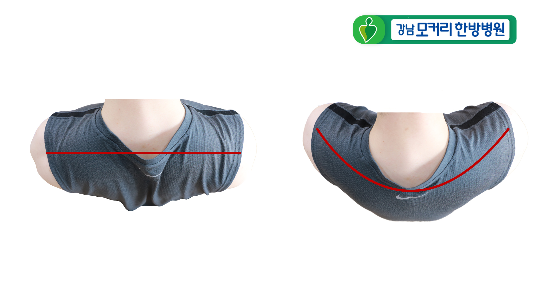 다만, 어깨통증과 퇴행성질환을 야기하는 주요 원인인 라운드숄더를 교정하지 않으면 아무리 좋은 치료를 받아도 염증과 통증이 계속 반복될 수 있습니다. 즉, 라운드숄더가 있는 한 어깨를 움직일 때마다 뼈와 근육이 계속 마찰되어 손상되고, 염증을 일으키기 때문에 반드시 치료와 함께 말린 어깨를 펴주는 것이 중요합니다.