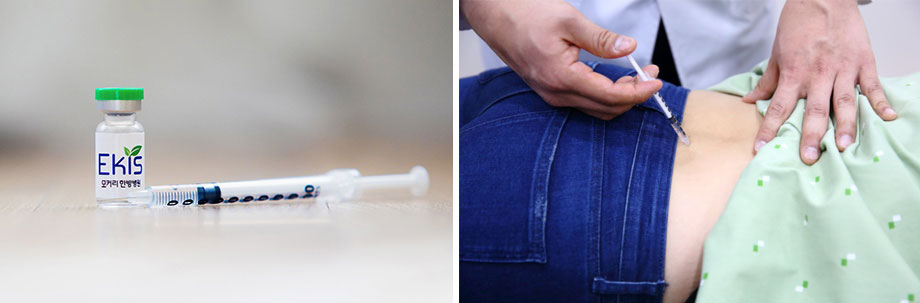 특허*받은 한약을 정제한 약침액을 통증을 일으키는 경혈에 직접 주입하여 염증과 통증을 빠르게 감소시키고, 교통사고 충격으로 손상된 근육과 인대의 기능을 회복 및 강화합니다. 또한 교통사고로 손상된 신경재생을 촉진시키고 혈액순환의 활성을 도와 근육과 인대의 긴장을 풀어줍니다. 이러한 에키스 약침은 모커리 독점 조제•추출 시스템으로 오직 모커리에서만 치료 받으실 수 있습니다.