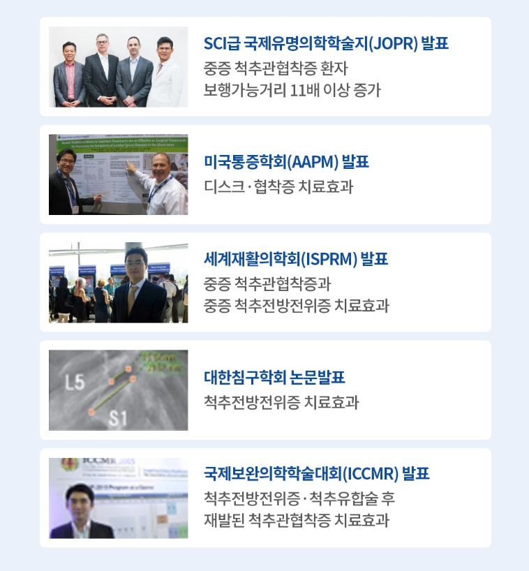 추나요법을 잘하는 곳이라면 단순 목통증, 허리통증 등의 질환뿐만 아니라 파열된 디스크, 말기 협착증, 척추전방전위증 등 고난도의 중증 퇴행성 척추질환까지도 추나요법으로 치료가 가능해야 합니다. 따라서 추나치료를 받고자 하는 병원이 심하게 파열된 디스크, 말기 척추관협착증, 뼈가 50% 정도 밀려나간 척추전방전위증, 척추유합술 후 재발 등 고난도의 중증 퇴행성 척추질환까지도 추나요법으로 치료가 가능한 곳인지 반드시 확인해야 합니다.