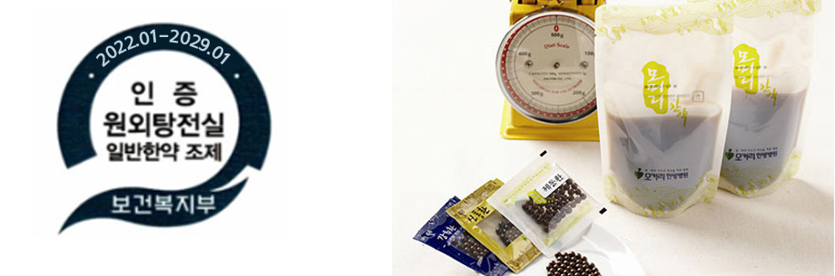 모커리한약은 보건복지부의 탕전실 인증제를 국내최초로 통과하였습니다. 탕전실인증제는 한약의 품질을 높이고 안전하게 조제되었는지 국민들이 쉽게 확인하고 신뢰할 수 있도록 2019년 1월 보건복지부가 도입한 제도입니다. 모커리한방병원은 총 81개의 엄격한 평가항목을 통과하여 2019년 국내 최초로 탕전실 인증제를 통과하였으며, 2022년 국내 최초 연장 인증을 받았습니다.