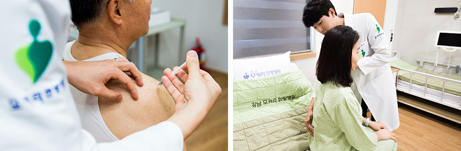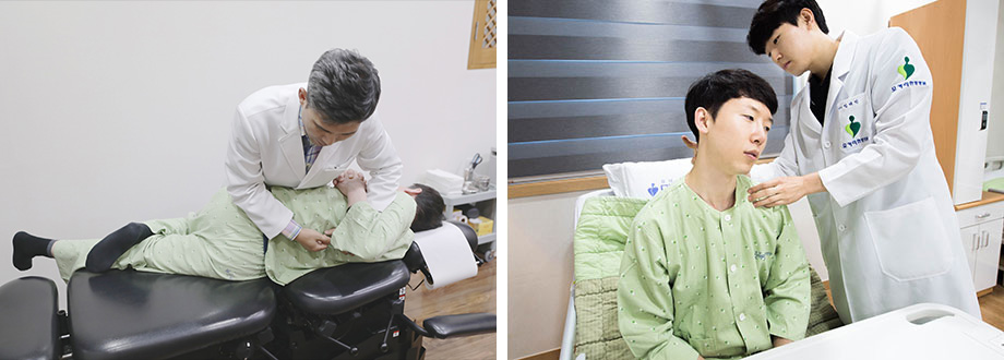 * 모커리한방병원 강남점과 수원점, 강동점은 양방과의 협진을 통해 도수치료를 병행하여 사고 충격으로 인해 경직된 근육과 인대를 꼼꼼하게 풀어 통증을 완화하고, 기능을 회복 및 강화합니다.