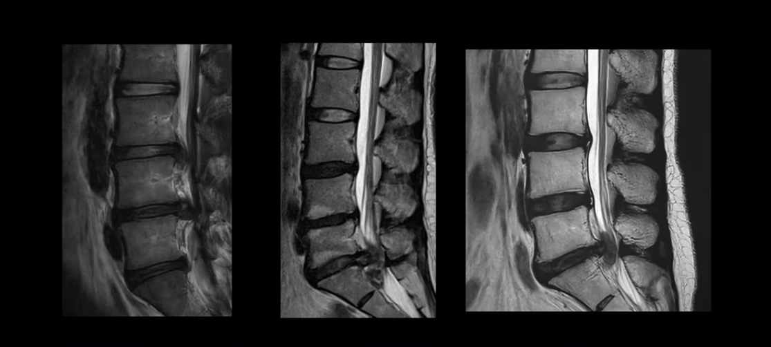 여기 MRI를 보시면 디스크 파열이 엄청나게 심한 분들입니다. 보시다시피 파열이 너무 심해서 이런 분들이 정형외과나 신경외과 가시면 거의 다 바로 수술하라는 얘기를 듣습니다. 그런데 이런 심한 파열일수록 오히려 치료가 더 잘 될 가능성이 매우 높다고 말씀 드리는 겁니다. 이분들 비수술 치료후기는 아래 영상을 참고하시길 바랍니다.