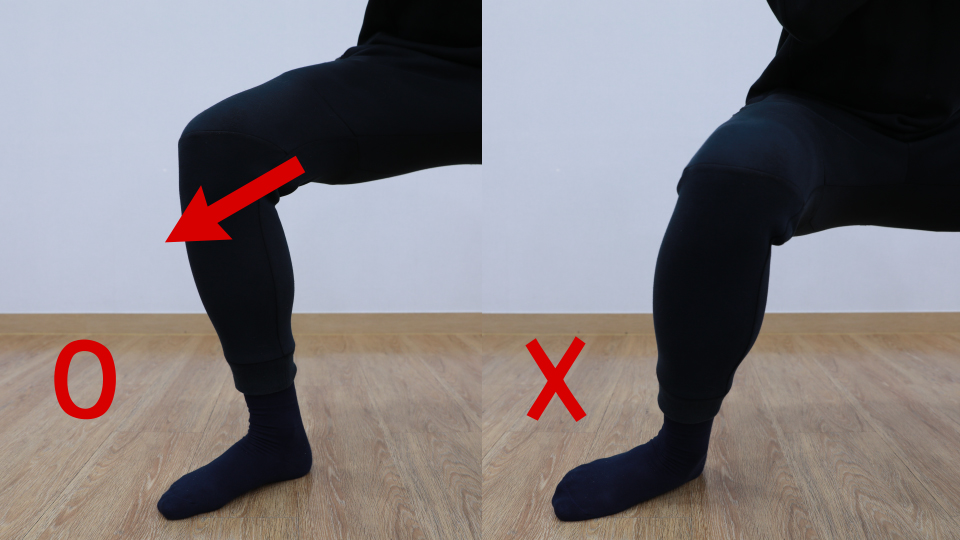 1. 아래로 내려갈 때 무릎을 몸 앞쪽이나 무릎 안쪽 방향으로 앉는 것이 아니라 발가락 방향, 특히 두 번째 발가락 방향으로 구부려 앉아야 합니다.