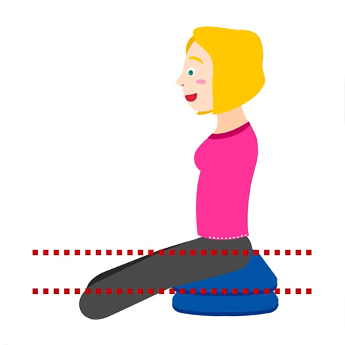 이럴 때는 바닥에 방석을 2개 정도 포갠 후 엉덩이 아래에 깔아서 엉덩이의 위치가 다리보다 더 높게 한 뒤 앉는 것을 권해드립니다. 이렇게 앉으면 방바닥에 그냥 앉을 때와 비교해 요추 전만이 자연스럽게 유지되기 때문에 통증을 완화하는 데 도움이 됩니다.