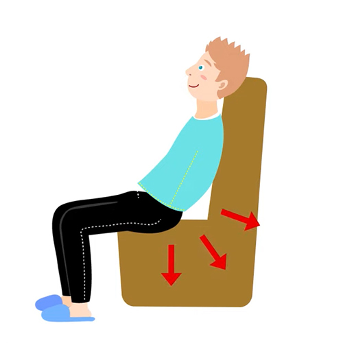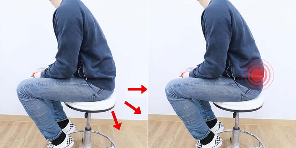 앉았을 때 바닥이 푹 꺼지는 의자, 또는 소파는 허리 뒤쪽으로 하중을 쏠리게 만들기 때문에 잠깐만 앉아있어도 통증을 쉽게 발생시킬 수 있습니다. 많은 분들이 ‘잠깐은 괜찮겠지’라는 생각으로 무심코 이런 의자에 앉게 되는데, 디스크 환자들은 이미 허리 뒤쪽에 있는 근육, 인대, 디스크가 모두 퇴행되고 손상되어 있으므로 이런 의자에 아주 짧은 시간만 앉아있어도 허리가 쉽게 아파질 수 있습니다.
