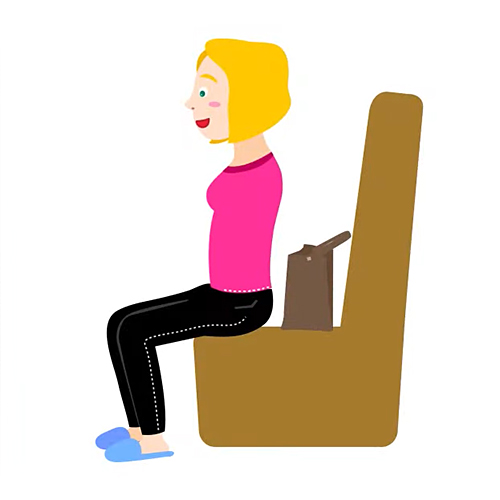 상체를 앞으로 숙여 거북목 자세로 앉으면, 몸이 등받이에 기대지 못하게 되니까 허리에 피로가 쉽게 찾아옵니다. 또 이 상태에서 자연스럽게 등이 굽어지면서 허리도 일자 상태로 펴져 허리에 지속적으로 긴장이 가해지고, 이 때문에 통증이 발생할 가능성이 높아집니다. 따라서 허리디스크 환자는 허리와 등을 꼿꼿하게 펴고, 거북목 자세가 아니라 우리의 머리가 정확히 몸통의 중앙에 위치하도록 의식적으로 신경 써야 합니다. 이를 위해선 의자 깊숙이 엉덩이를 최대한 밀어 넣고, 등받이에 기대고, 만약 헤드레스트가 있는 의자라면 뒤통수를 딱 붙여서 앉는 것이 좋습니다.