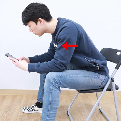 허리디스크 환자가 하지 말아야 할 앉는 자세 5. 거북목 자세를 취하고 앉는 것
