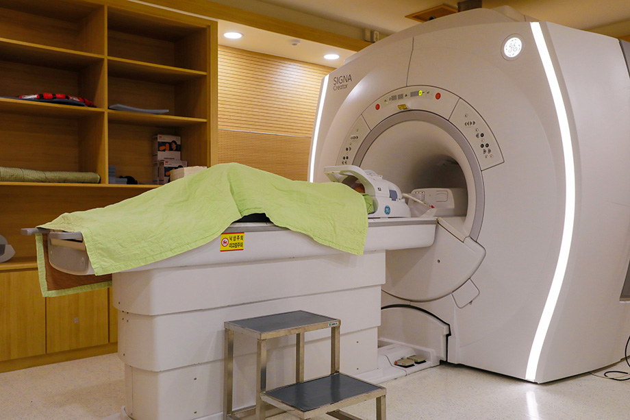 말초성 안면마비의 증상은 중추성 안면마비(대표적으로 중풍, 뇌졸중)와 매우 유사하기 때문에 감별 진단이 굉장히 중요합니다. 특히 중추성 안면마비는 굉장히 심각한 질환의 증상일 수 있기 때문에 구안와사의 말초성, 중추성 여부를 정확하고 신속하게 구별하는 것이 필요합니다. 이를 위해서는 뇌 MRI 검사를 실시하여야 합니다. 뇌 MRI 검사를 통해서 중추성 안면마비의 원인인 뇌졸중 여부를 확인할 수 있습니다. 본원에 설치된 MRI는 고해상도 장비(1.5T)로, 세밀한 영상을 통해 정확한 진단이 가능합니다.