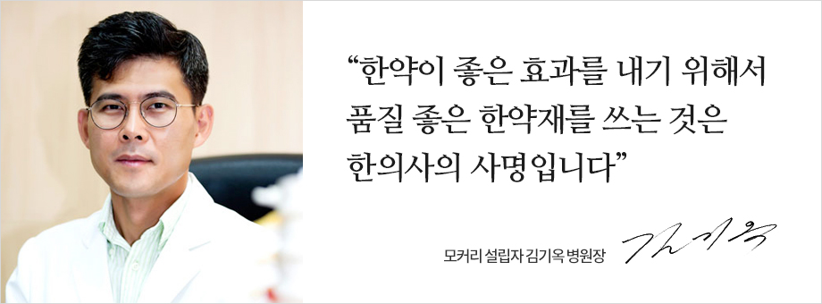 모커리는 품질 좋은 한약을 만들기 위해서 개원 초부터 오랜 기간 노력을 해왔습니다. 현재 한방병원, 한의원 등 의료기관에서 조제하는 한약에는 모두 규격품 한약재를 쓰도록 되어있습니다. 그런데 같은 규격품의 한약재일지라도 품질과 효능이 더 좋은 고품질의 한약재들이 존재합니다. 모커리는 약재의 가격보다 오로지 품질을 우선하여 고려하며 정말 질 좋은 고품질의 좋은 약재를 선별해 정량을 지켜서 사용합니다.