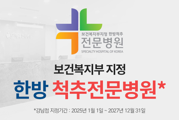 모커리한방병원 강남본원은 보건복지부가 공식으로 지정한 한방 척추전문병원입니다. 목과 허리, 관절 치료에 대해 임상경험이 풍부하고 이를 전문적으로 치료하기 때문에 척추관절 통증도 빠른 회복을 기대할 수 있습니다.
