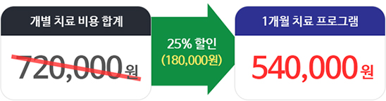 - 침 치료는 건강보험 항목이므로 프로그램 가격에 포함되지 않고 매 회 치료시 별도 수납됩니다.