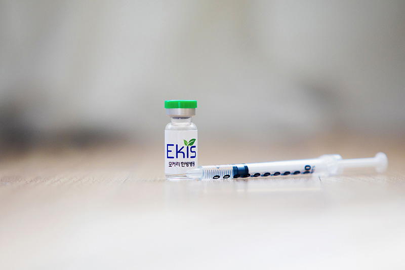 척추관협착증 환자는 퇴행성 변화로 인해 근육과 인대가 딱딱하게 굳어 있고 약해져 있습니다. 파골세포 분화 억제용 또는 연골세포 분화 촉진용 조성물(SG-Ⅱ)로 특허받은 강척한약을 정제한 약침액을 척추관협착증 통증 부위의 경혈에 직접 주입하는 방법입니다. 척추관협착증으로 손상된 근육과 인대의 기능 회복 및 강화뿐만 아니라 염증 및 통증을 빠르게 감소시켜 줍니다. 또한 척추관이 좁아져 나타나는 신경 손상의 진행을 막고 손상된 신경 재생을 촉진시켜 줍니다.