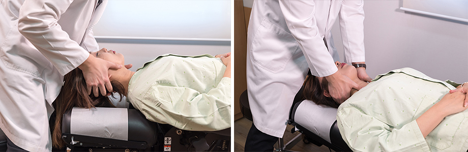 한의사가 직접 목 주변의 경직된 근육과 인대를 풀어주어 경추 마디관절이 부드럽게 움직일 수 있도록 도와줍니다. 또한, 목 주변 근육의 후관절을 좌우로 열어주어 목이 움직일 수 있는 범위를 늘려줍니다.