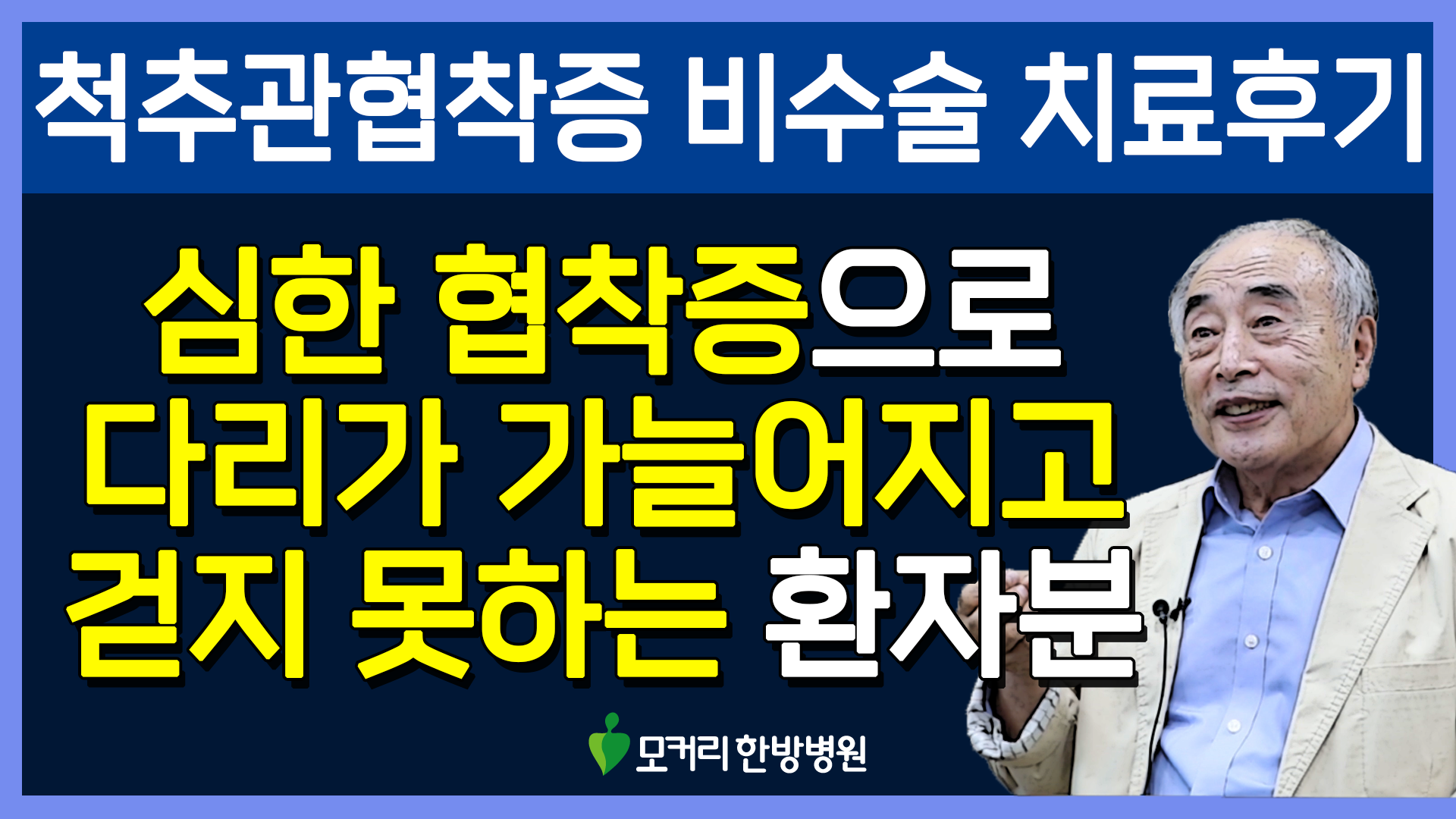 많은 환자분들이 이 환자분처럼 척추관이 막히고 다리가 저리면서 힘이 빠져 걸을 수가 없게 되고 신경주사 치료도 효과가 없어지면 대부분 수술 권유를 받게 됩니다. 이 환자분도 유명 대학병원에서 수술 권유를 받았으나 심장 문제로 수술을 받지 못하셨습니다. 그런 상황에서 모커리한방병원 유튜브 협착증 운동을 따라 하면서 일부 효과를 보시고는 모커리로 내원하셨습니다.