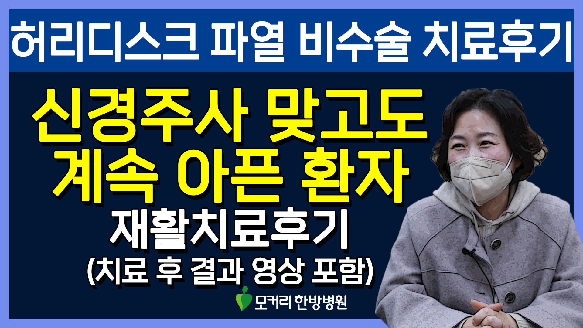 “신경주사를 두 번이나 맞았는데도 불구하고 참기 힘든 통증이 몇 배 이상으로 늘어났습니다. 통증이 심하니까 먹는 것도 제대로 먹지 못했고, 너무 아파서 밤에 혼자서 울기도 했습니다”