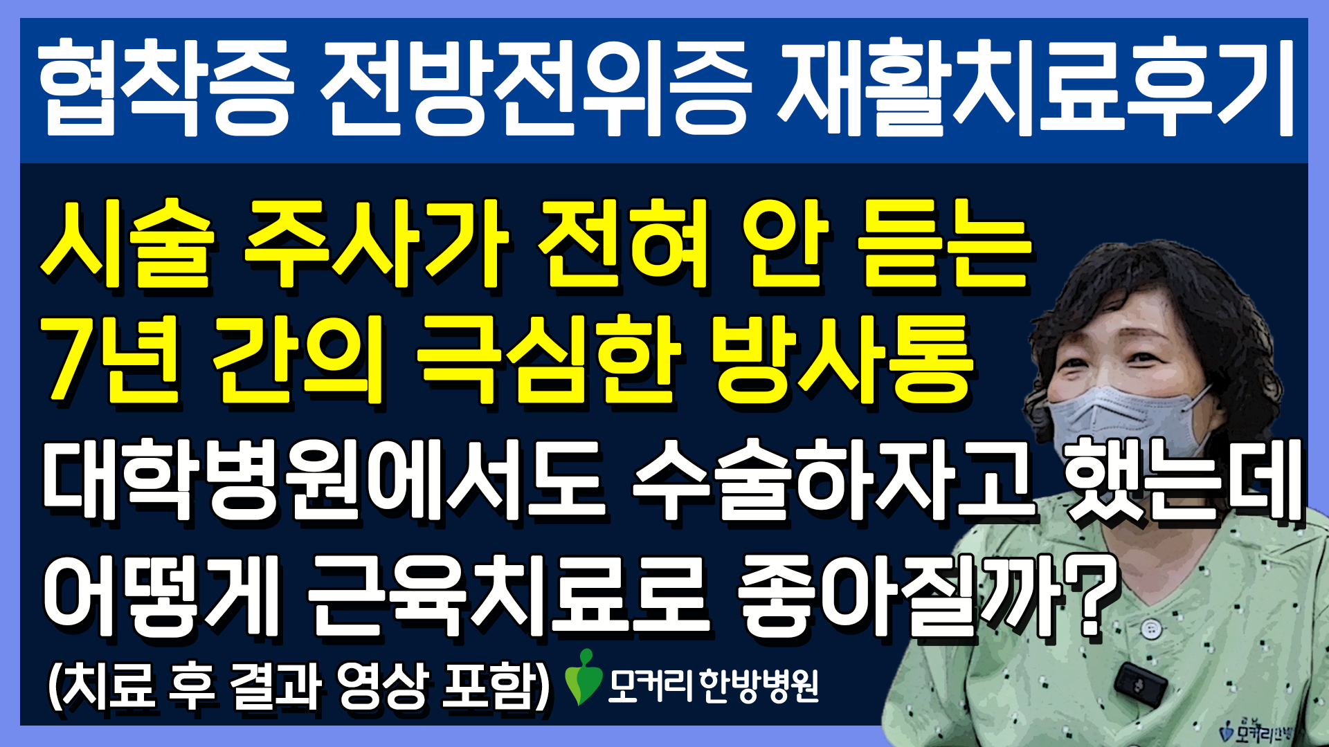 이 환자분 말씀 잘 들으셨나요? 7년 간을 고생했으나 어떤 치료에도 좋아지지 않았고 대학병원에서도 수술 밖에 방법이 없다고 들었습니다. 보통 이렇게 근육성으로 방사통이 있는 분들은 두 가지 타입으로 나뉩니다.