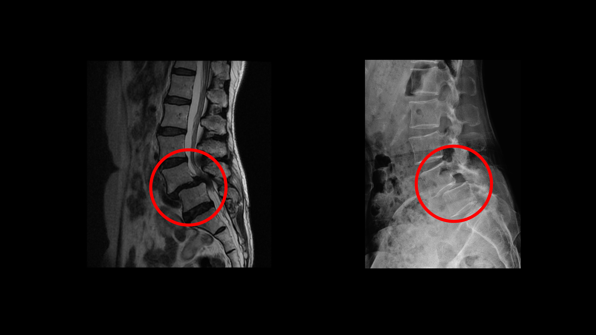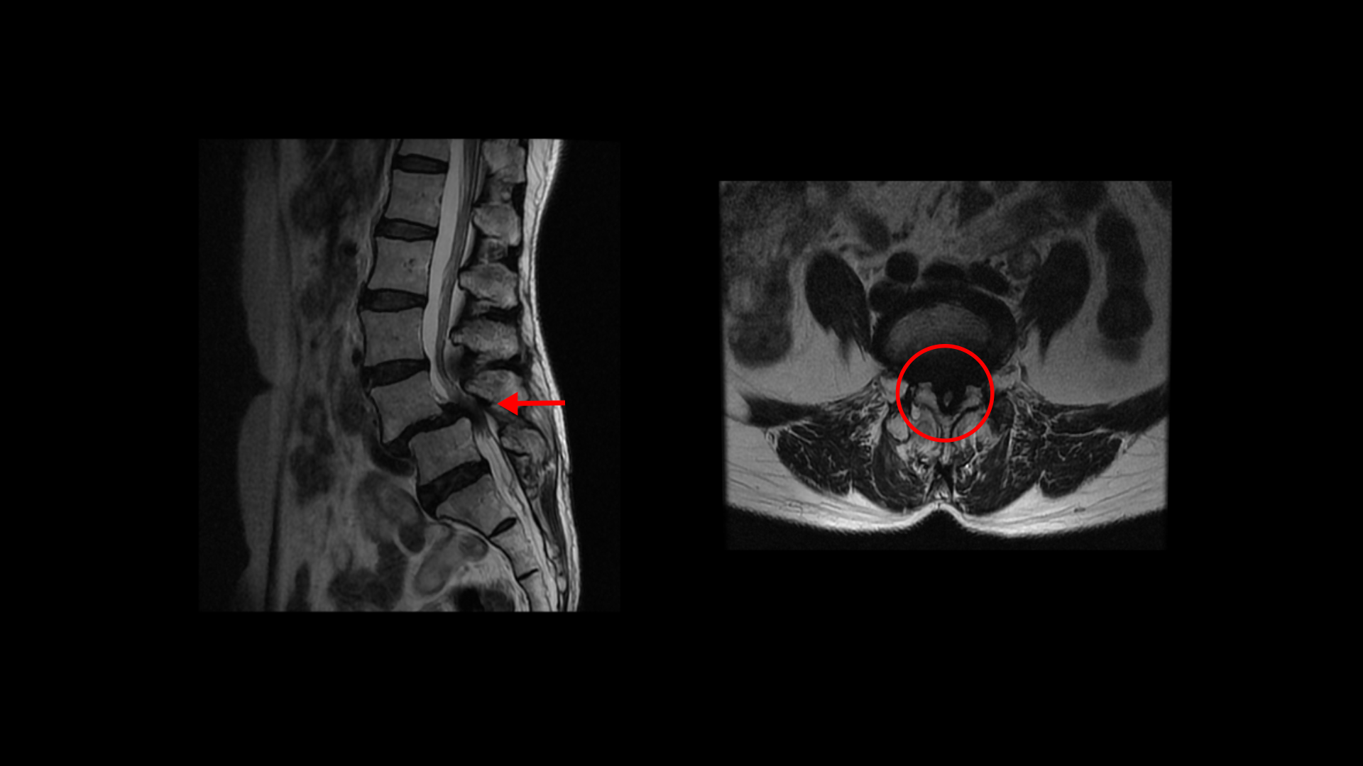 이 환자분 상태를 먼저 설명 드린 후 이분 말씀을 들어보겠습니다. 이분 MRI를 보면 전방전위증과 척추관협착증이 정말 심합니다.