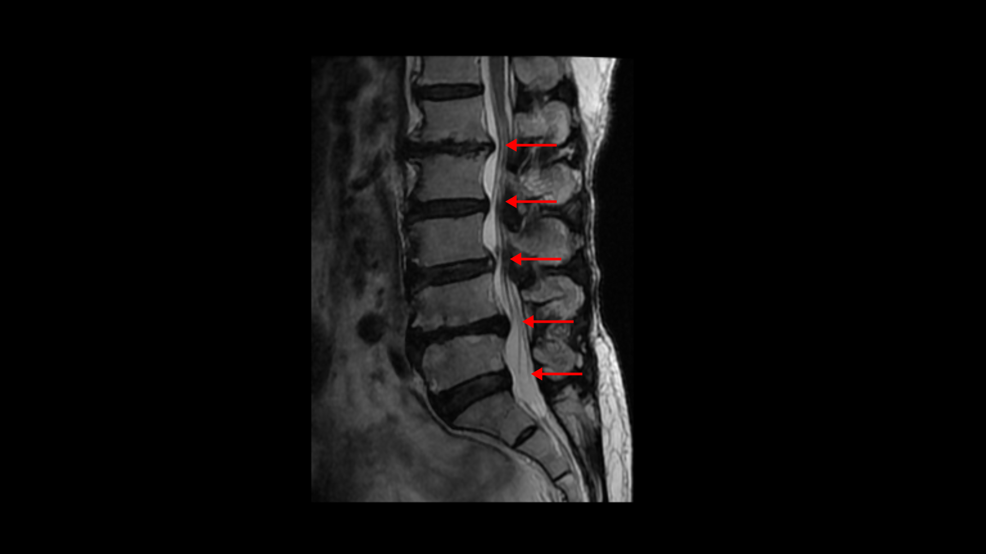 이분 MRI를 보면 허리 다섯 마디에 전부 퇴행성 디스크가 있습니다.