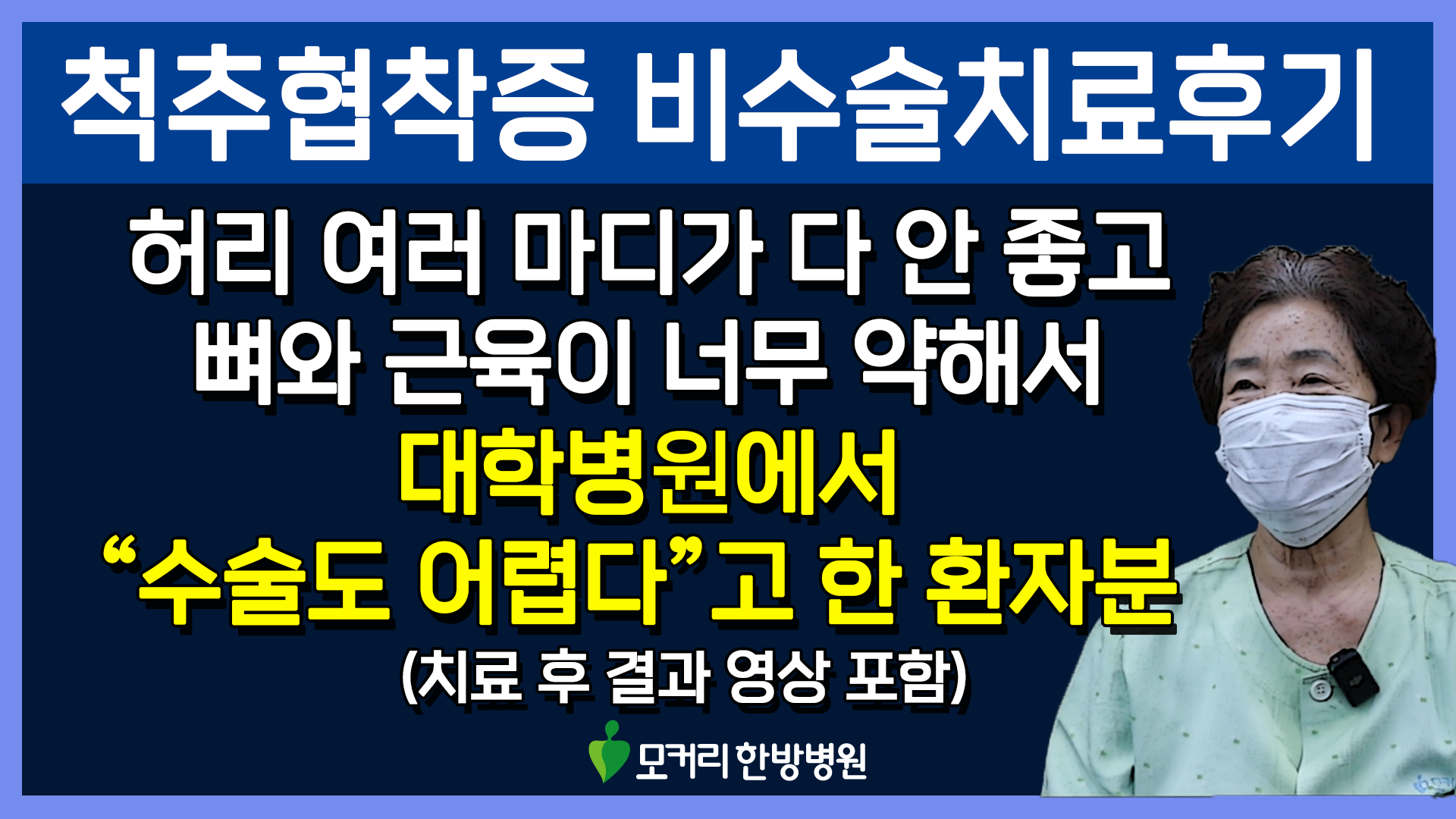 이렇게 여러 마디가 퇴행이 심하고 근육도 없고 골다공증도 있는 협착증 환자분을 근육재활치료로 어떻게 고칠까요? 저희는 수많은 영상을 통해 아무리 안 좋은 협착증 환자라도 근육이 좋아지면 협착증 증상이 좋아진다고 설명하고 있고 임상연구를 통한 국제학술논문도 발표하고 있고 또 이 치료후기와 같은 수많은 영상 치료후기를 통해 직접 치료결과를 보여드리고 있습니다. 그럼에도 불구하고 이런 수많은 치료후기와 논문 등을 믿지 못하고 지금도 고민만 하고 계신 분들이 많습니다. 참으로 안타까운 일이 아닐 수 없습니다.
