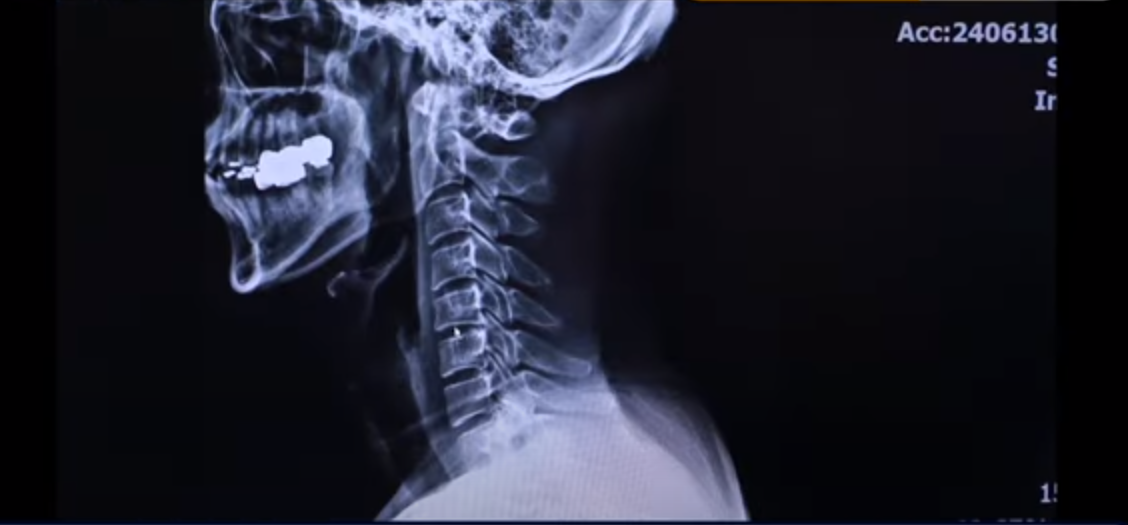 저희가 왜 목 디스크 치료가 쉽다고 하냐면 엑스레이 사진을 보면서 설명 드리도록 하겠습니다. 이분 엑스레이 사진입니다. 보시다시피 완전히 일자입니다. 이런 걸 일자목이라고 합니다.