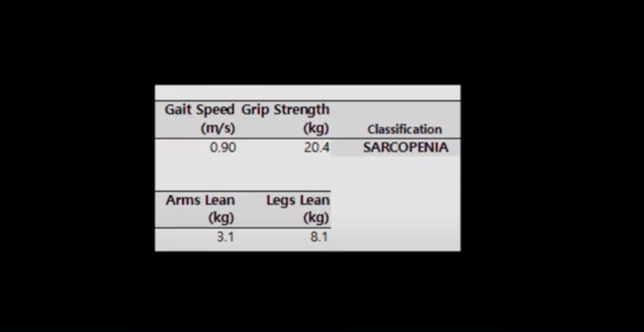 50대 후반에 근육이 많이 줄어들고 약해진 여성 환자들에게서 많이 보이는 체형입니다. 거북목에 등은 굽어있고 어깨도 앞으로 말려 있으면 등 근육과 뒷목 근육이 머리를 붙잡고 있느라 긴장되고 뭉치고 아플 수밖에 없습니다. 게다가 이분 근육을 검사했더니 놀랍게도 근감소증이 나왔습니다. 근육량도 기준보다 훨씬 더 적은 겁니다. 그러니까 다른 환자들보다도 더 심하게 아프고 오랫동안 아플 수밖에 없는 겁니다.