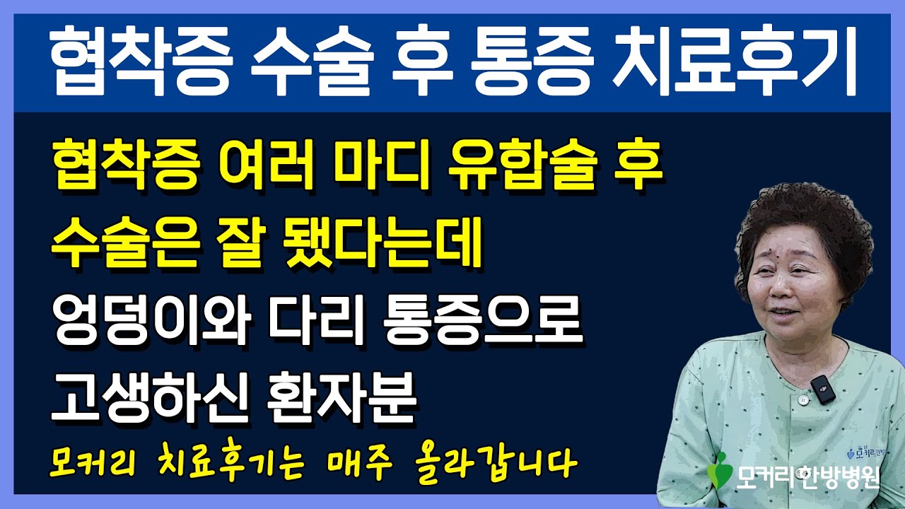 수술로 신경 눌림이 잘 풀려도 협착증 환자는 근육 문제 때문에 엉덩이와 다리가 얼마든지 아플 수 있습니다. 저희 모커리한방병원이 협착증 관련 설명 영상에서 수없이 반복해서 설명해 드리고 있는데 협착증 환자는 노화로 신경 구멍이 좁아져 있을 뿐만 아니라 근육이 많이 줄어들어 약해지고 근육에 문제가 생겨서 뭉치고 굳고 틀어진 상태입니다. 그걸 가장 쉽게 확인할 수 있는 게 70대 이상의 협착증 환자의 척추를 보면 모두 예외 없이 다 틀어지고 휘어있습니다.