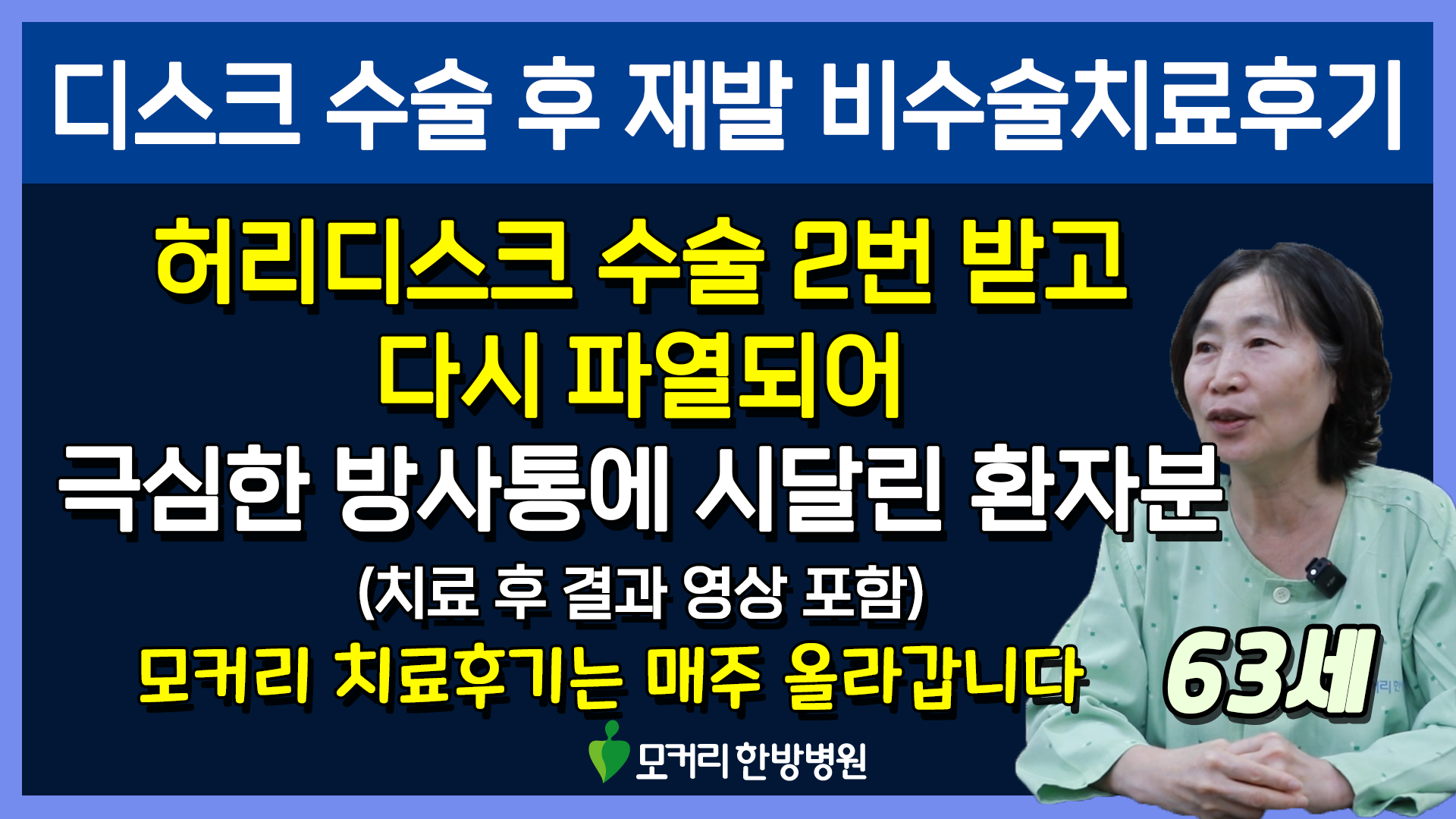 그럼 이분의 4주간의 입원치료 결과는 어떻게 되었을까요? 서있을 수도, 걸을 수도 없을 정도로 아픈 통증이 완전히 다 사라졌을까요? 이분의 치료 후 결과가 궁금하시다면 아래 영상을 꼭 보시길 바랍니다.