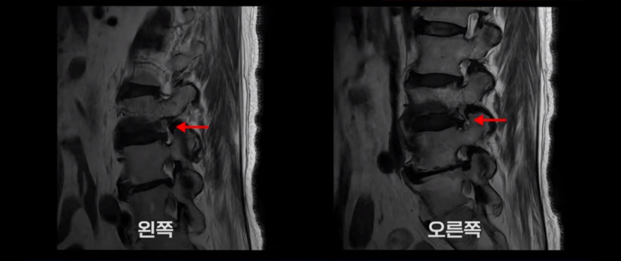 MRI를 보면 허리 4마디가 심하게 퇴행되어 있고
