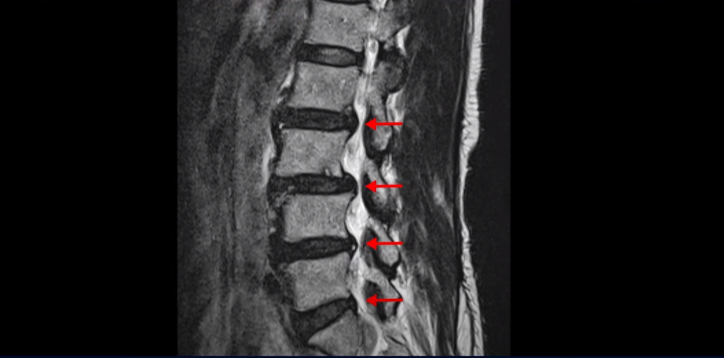 이분은 정형외과 병원에서 3마디 디스크 파열이라고 수술 권유를 받았는데 저희는 디스크 파열은 잘못된 진단이라고 봅니다. 여러 마디 보이는 디스크 문제는 파열이 아닌 퇴행성디스크들이고 아픈 원인은 전방전위와 협착증 증상입니다. 전방전위와 협착증이긴 하지만 아주 심한 게 아니고 발병한지도 얼마 되지 않아서 근육재활치료를 하면 2주 정도면 빨리 호전될 수 있는 상태였습니다. 왜 이런 환자가 치료하기 훨씬 쉬운 건지, 치료는 어떻게 하는 건지 지금부터 설명 드립니다.