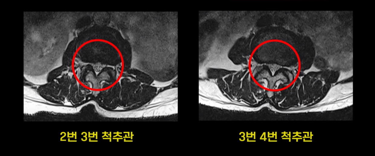 2번 3번과 3번 4번은 신경다발이 지나가는 척추관도 좁아져 있습니다.