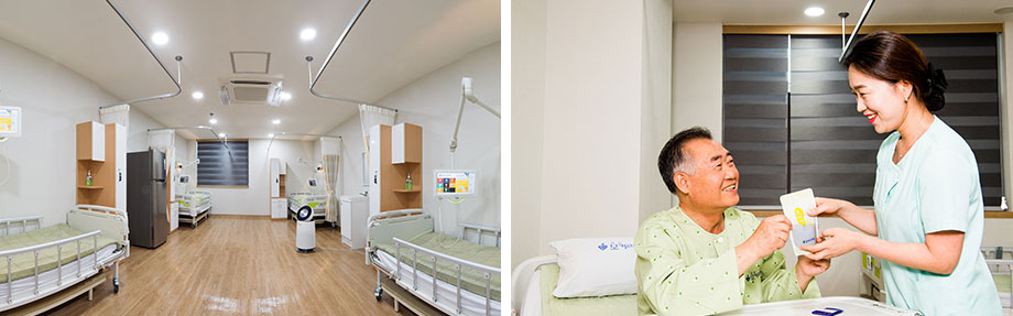 교통사고 후 일상생활이 불가능할 정도로 통증이 심하다면 입원치료를 고려해야 합니다. 모커리한방병원 강남점은 넓고 쾌적한 입원실에서 병동 전담 의료진이 24시간 환자 상태를 모니터링 하며 환자가 느끼는 근육과 인대의 손상 정도, 통증 등을 파악한 맞춤형 치료를 진행하고 있습니다. 척추관절 통증뿐 아니라 눈에 보이지 않는 두통, 어지럼증, 구토 등의 증상까지도 1:1 집중치료가 가능하여 증상에 빠르게 대처할 수 있습니다. 입원치료는 통원치료와 비교했을 때 더 집중적으로 치료를 받을 수 있어 치료기간도 단축될 뿐 아니라 안정된 환경에서 치료 직후 충분한 휴식을 취할 수 있어 빠른 회복이 가능합니다.